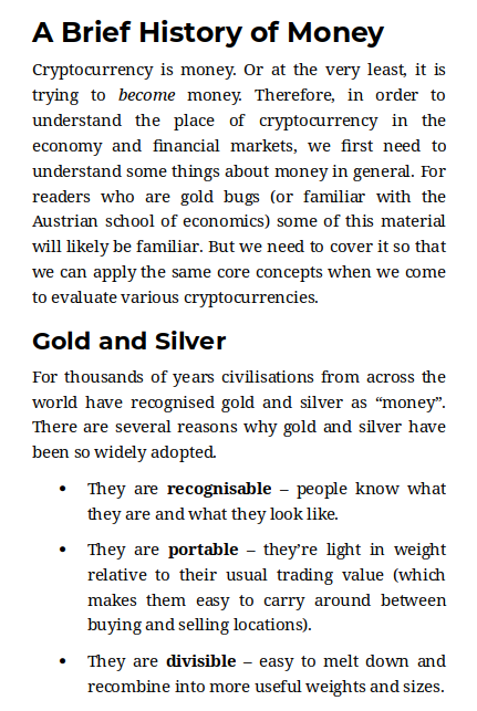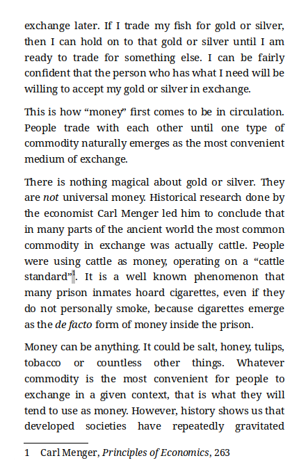 We look at history and see how money originated, the range of commodities that have been used as money and what made them successful. We also look at how we got where we are today, how and why governments tend to inflate the money supply and the myriad of problems that causes.